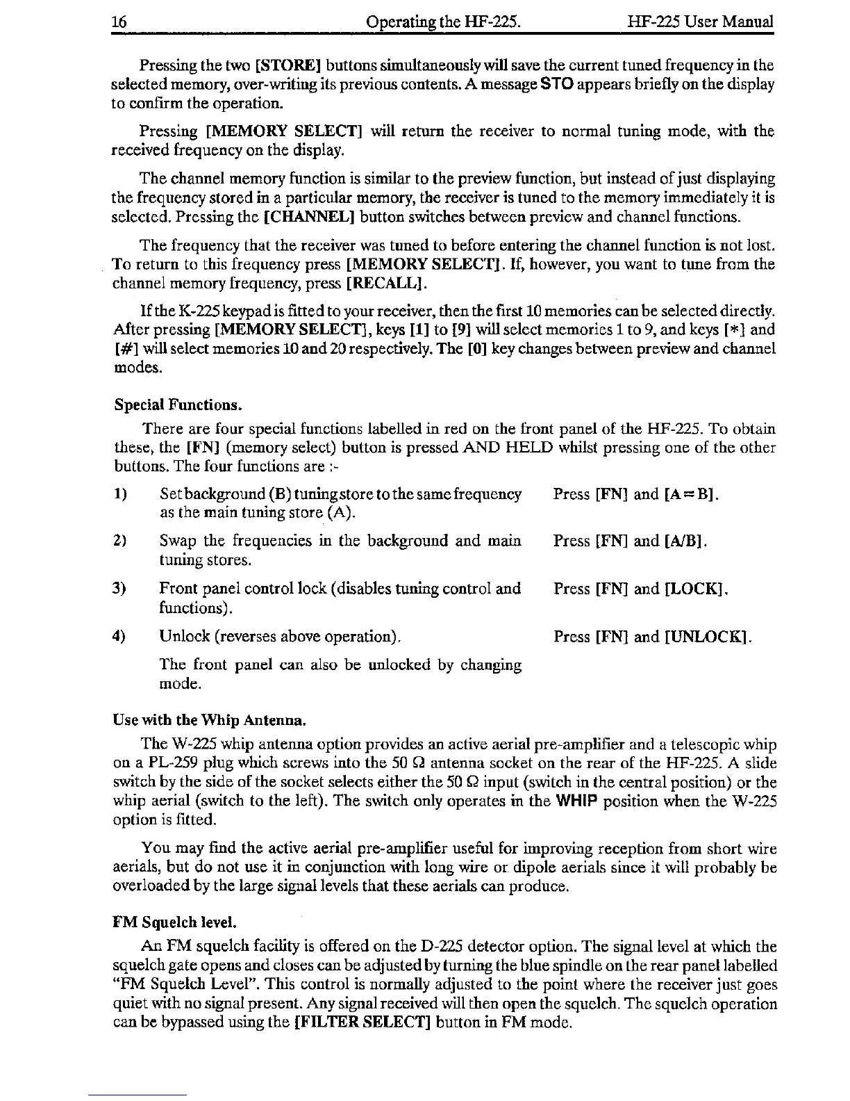 Lowe HF-225 - Use with the Whip Antenna; FM Squelch level