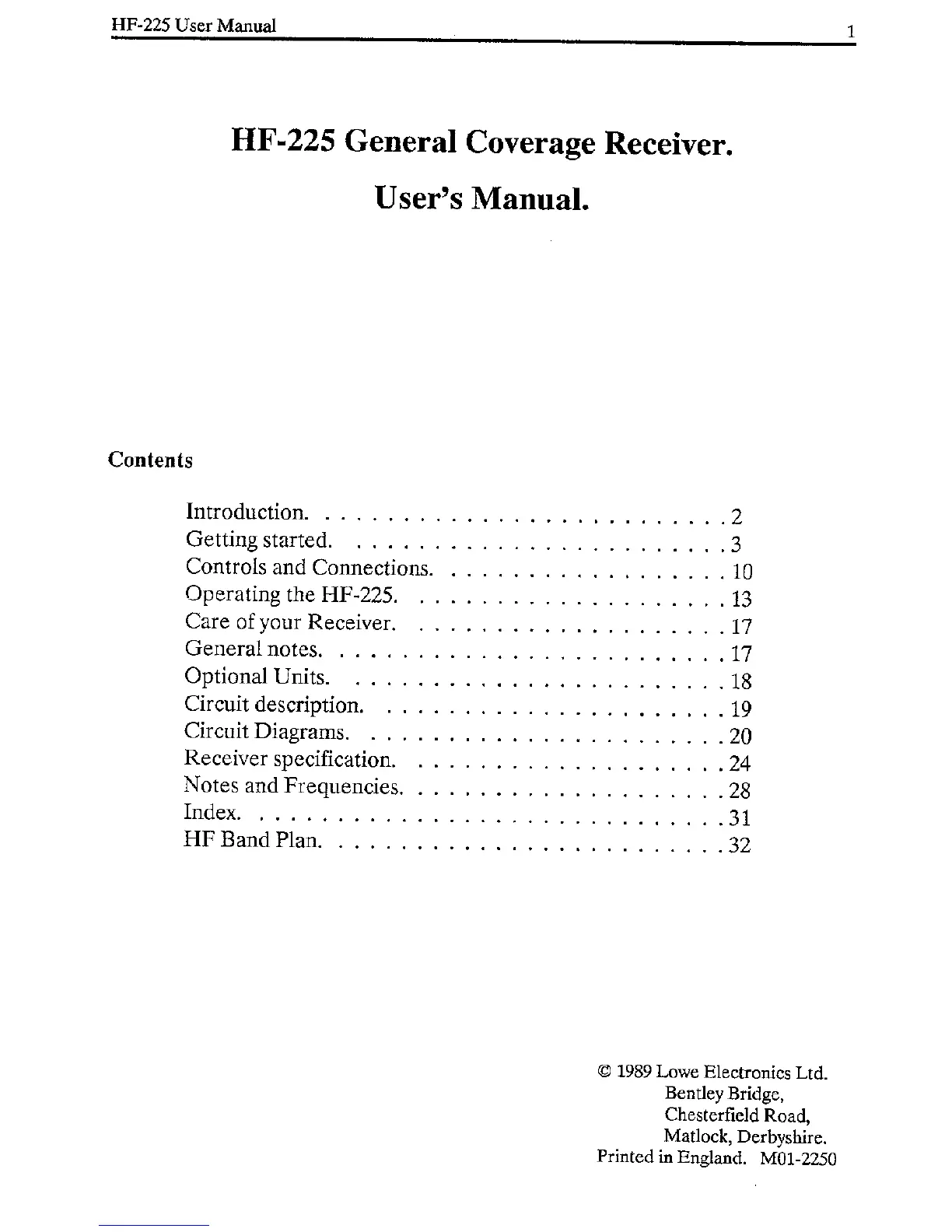 Lowe HF-225 - Contents