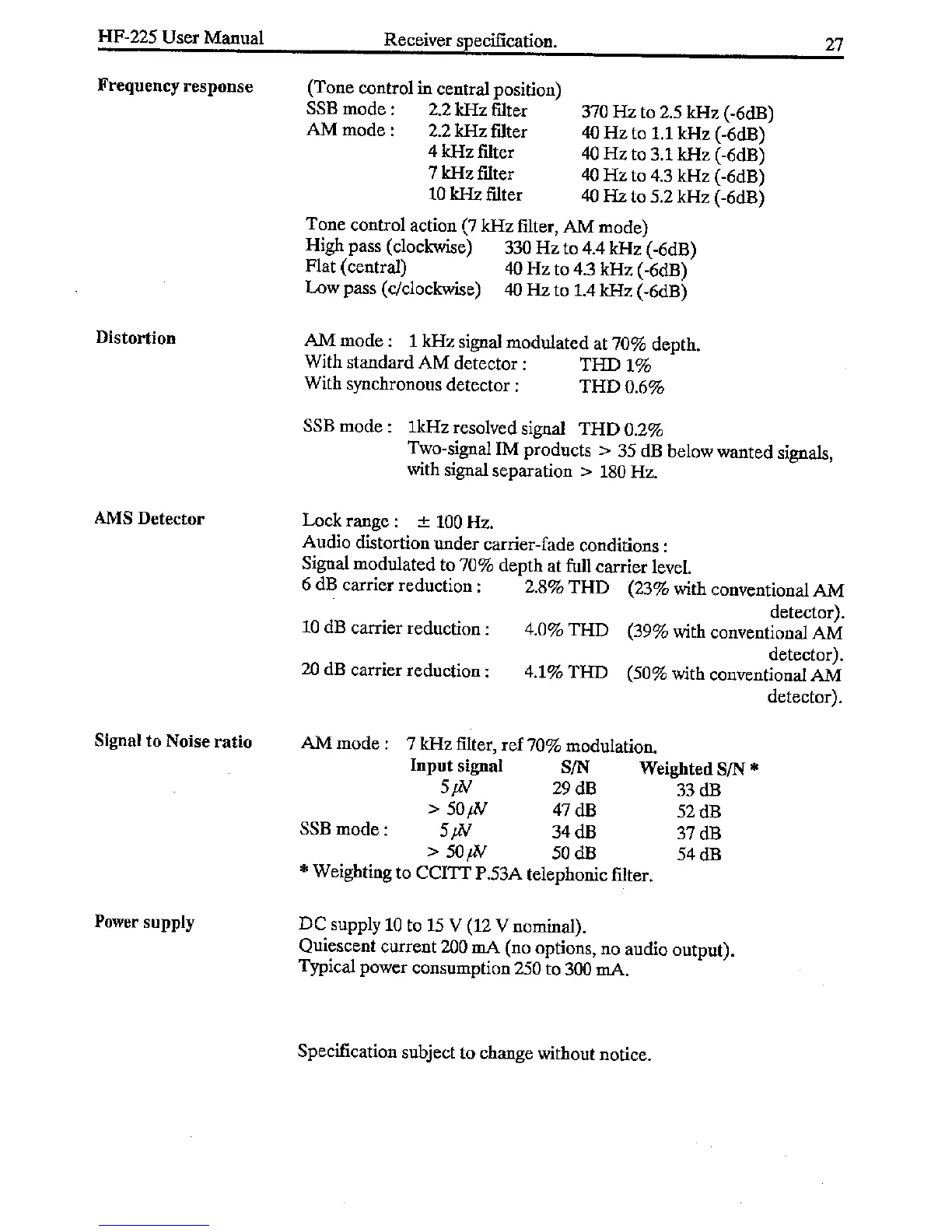 Lowe HF-225 - Frequency response; Distortion; AMS Detector; Signal to Noise ratio