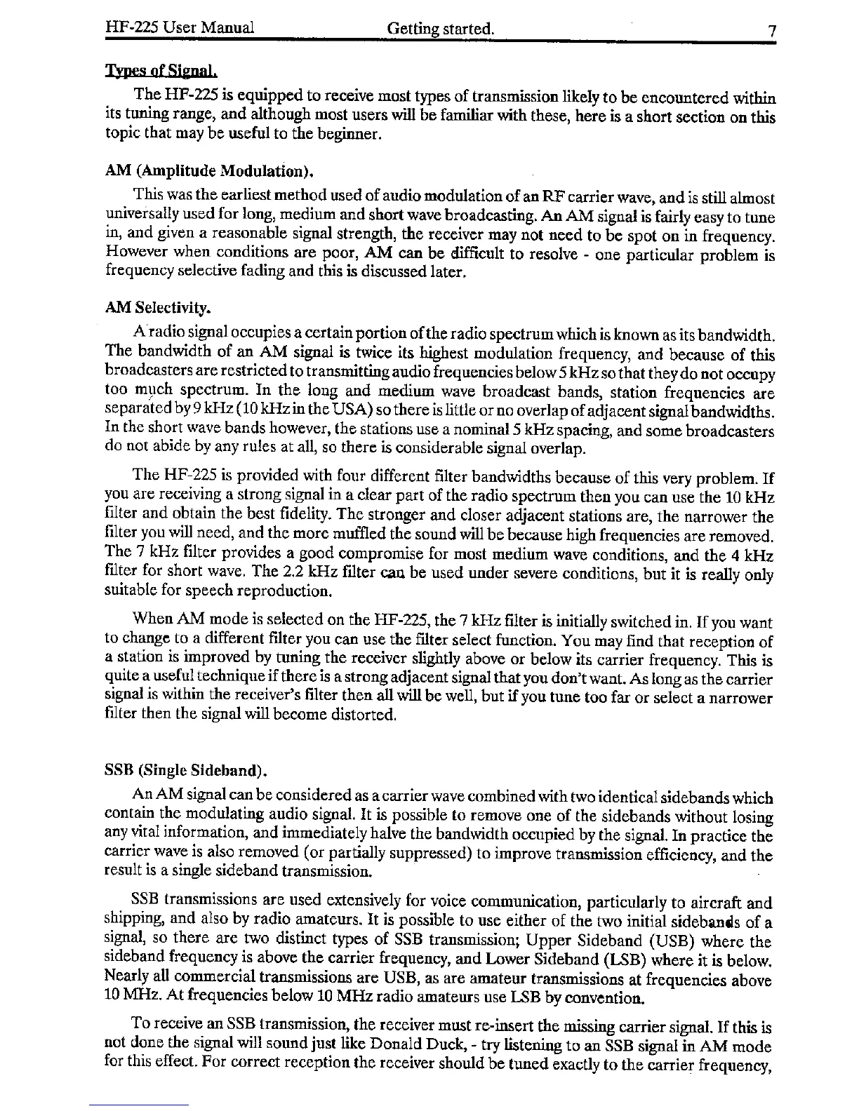 Lowe HF-225 - Types of Signal; AM (Amplitude Modulation); AM Selectivity