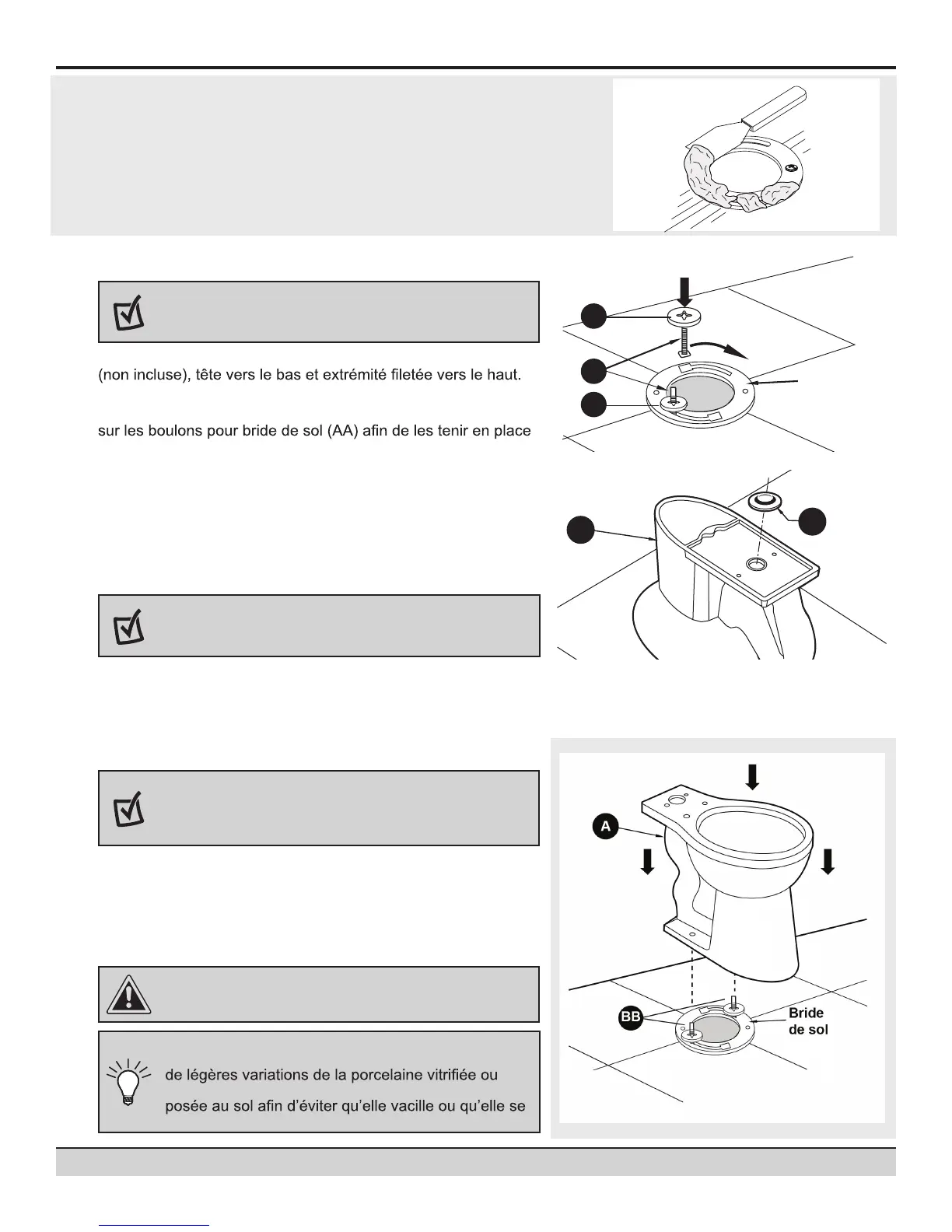 d’un plancher inégal.La cuvette doit être fermement