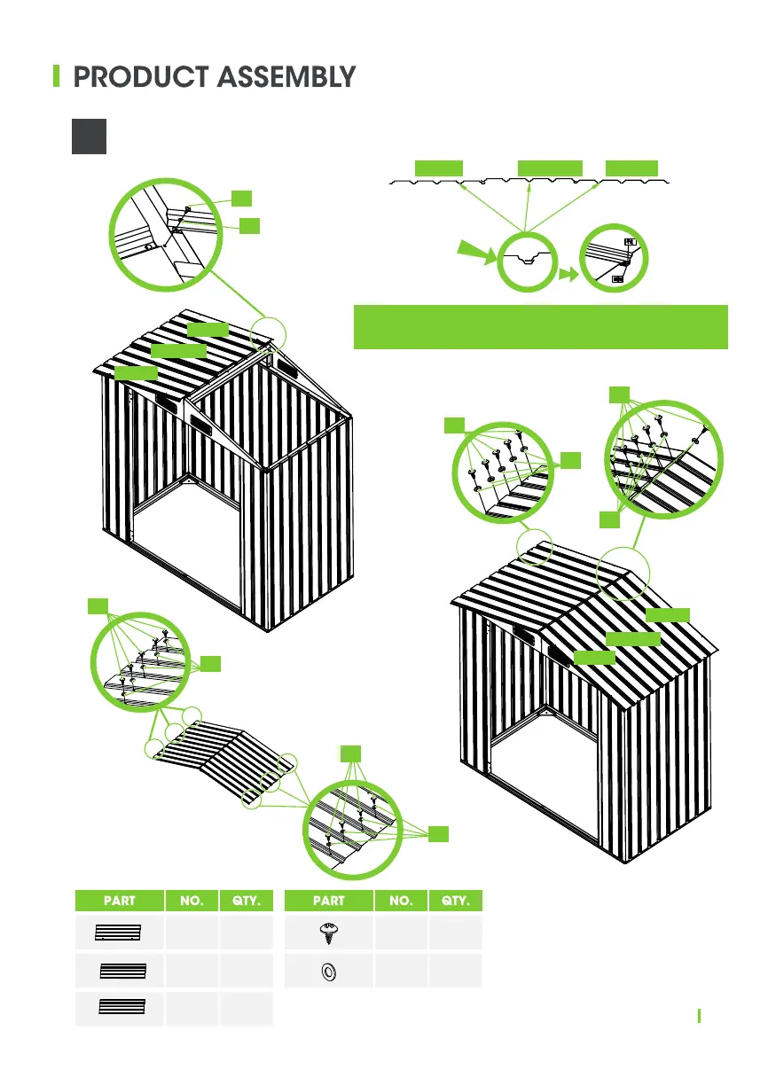 Install Shed Top Panels in the order shown.