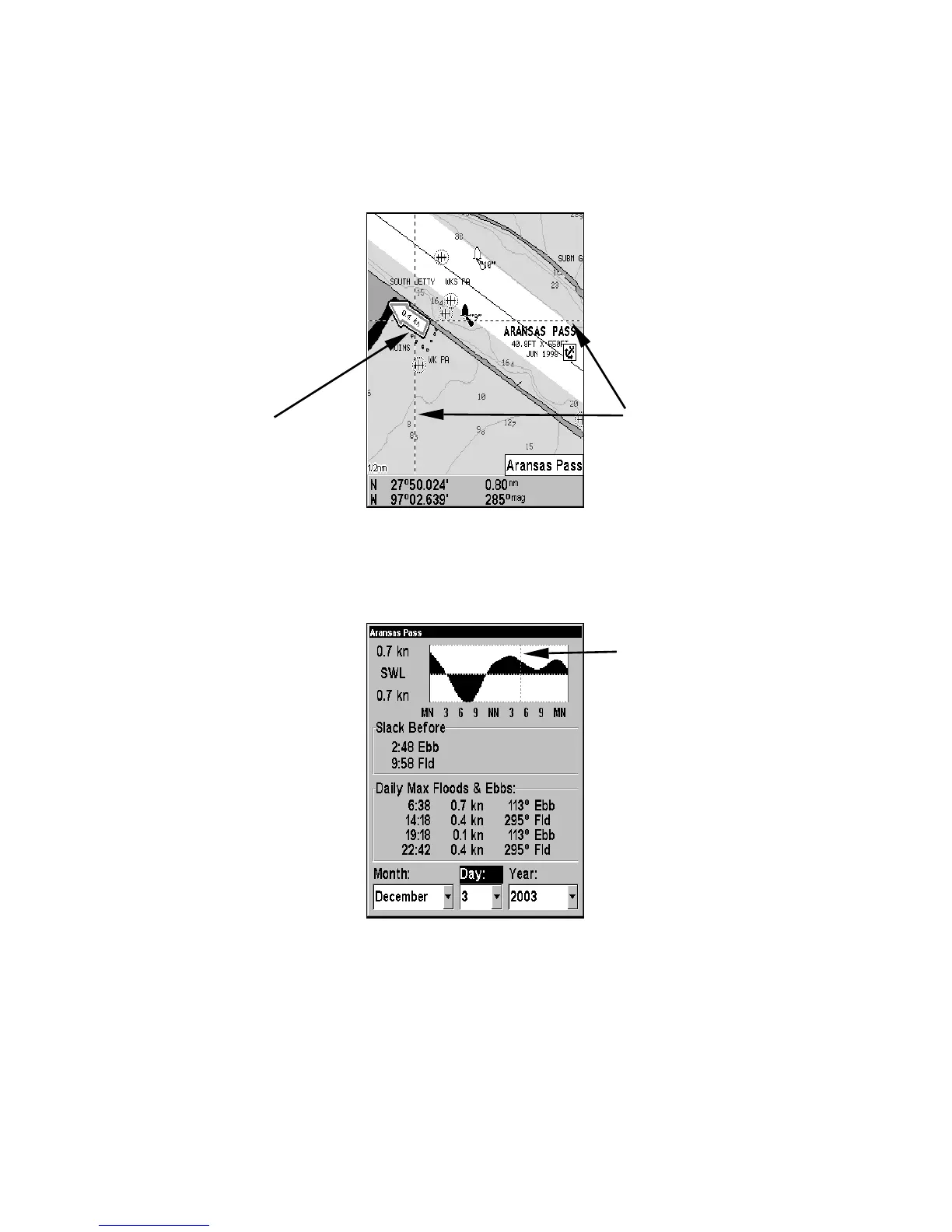 1. Use the arrow keys to move the cursor over a Tidal Current Station