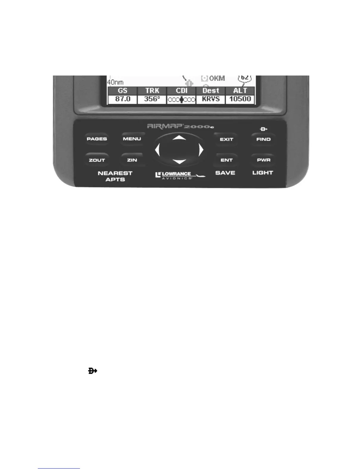 (Direct To) – The Find key launches the AirMap search
