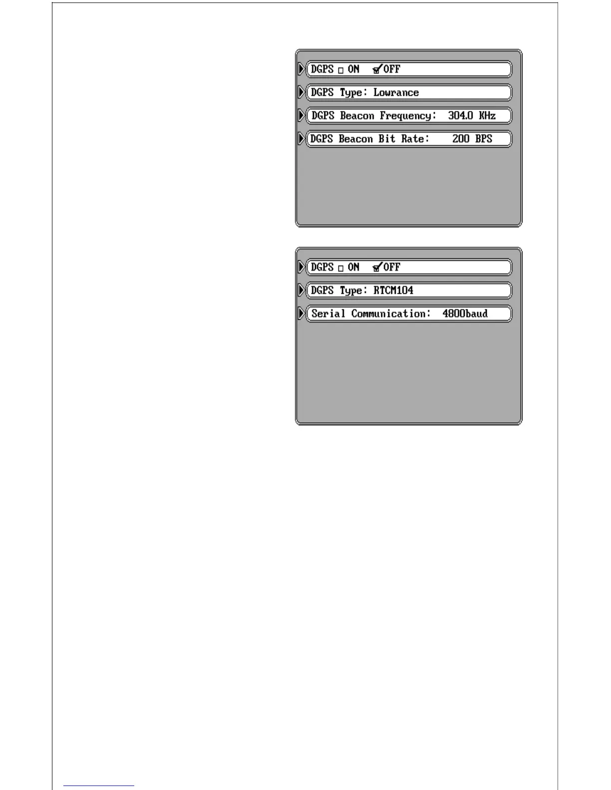 receivers. To enter the DGPS transmitter’s frequency, first select the