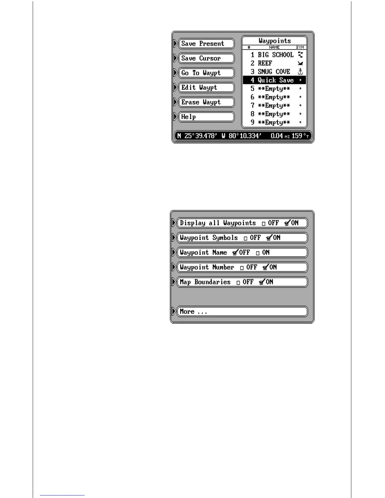 waypoint location will return to “Empty”. Press the CLR key to return to the