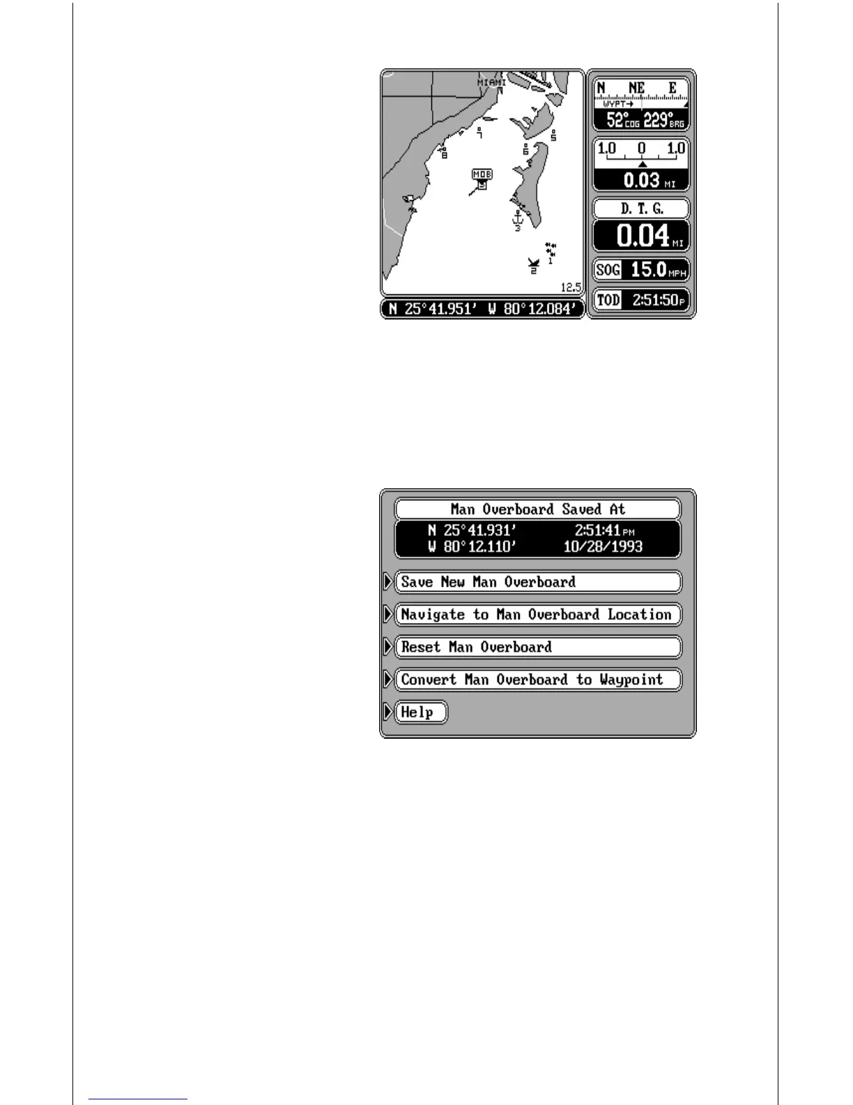 Once you’ve saved a Man Overboard position, the unit shows navigation