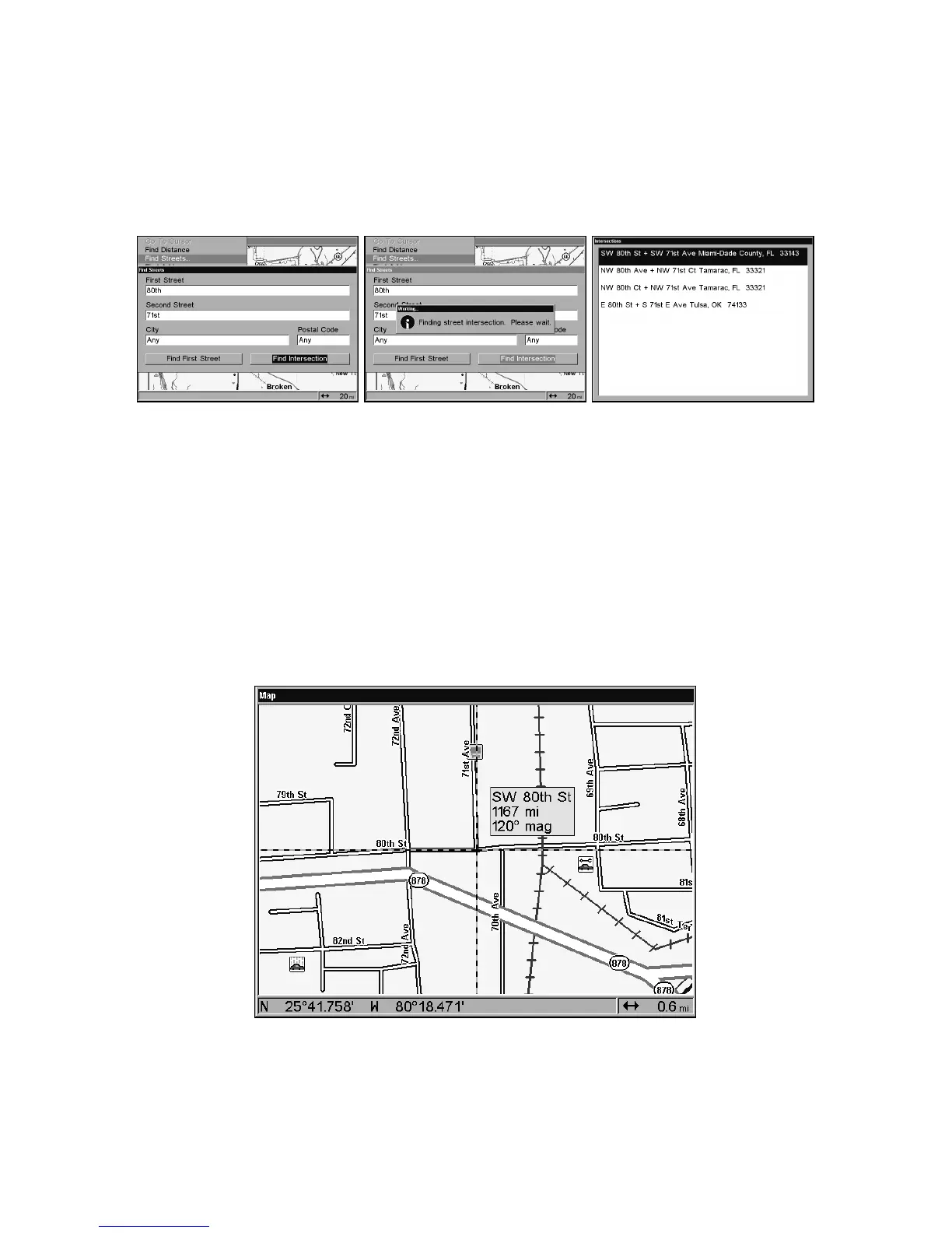6. To search for the intersection of the two streets, press ↓ to