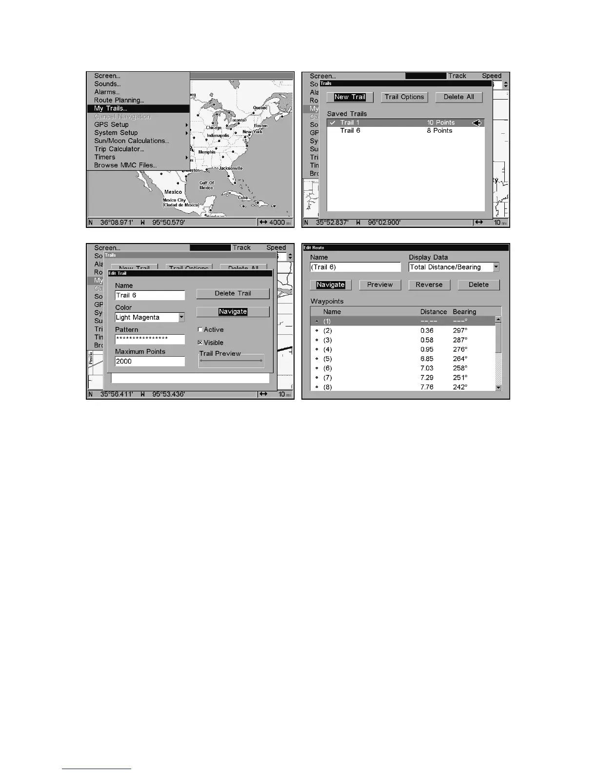 Trails Menu. Fig. 3, Edit Trail Menu. Fig. 4, Edit Route Menu with
