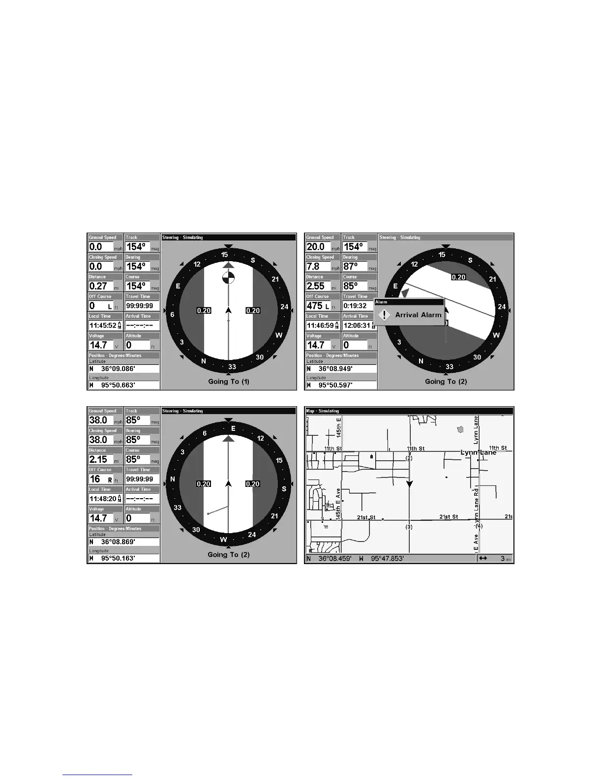 of a route, heading straight for the first waypoint (Wpt 1). In Fig. 2, the