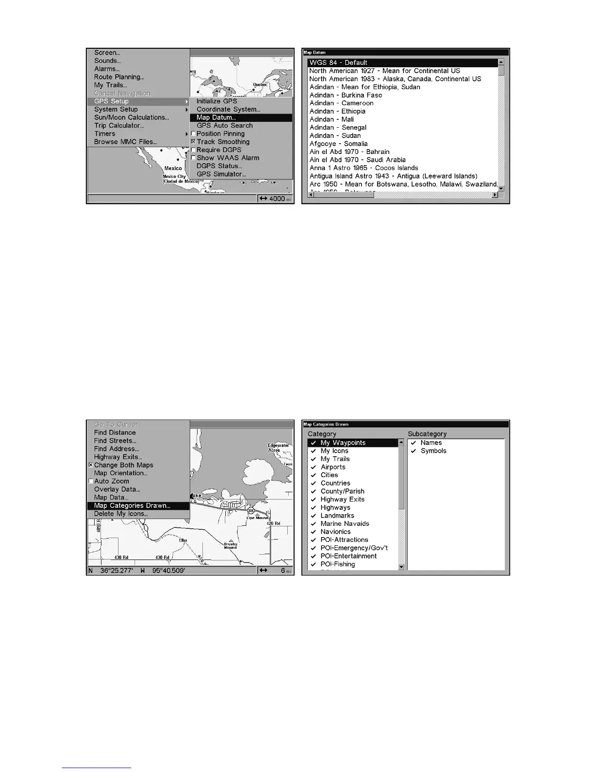 screen. This includes, waypoints, trails, icons, cities, highways, etc. You