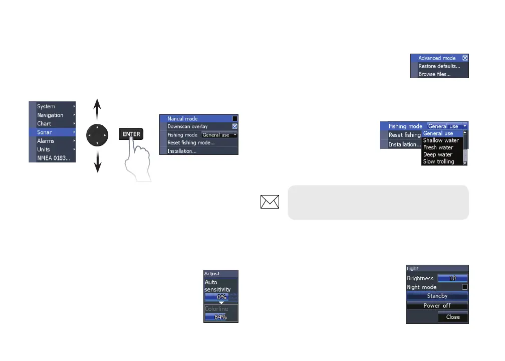 menu items and open submenus. Use the keypad