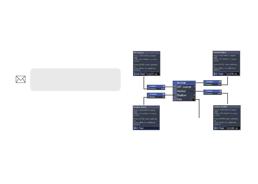 Arrival, O Course and Anchor alarms are only