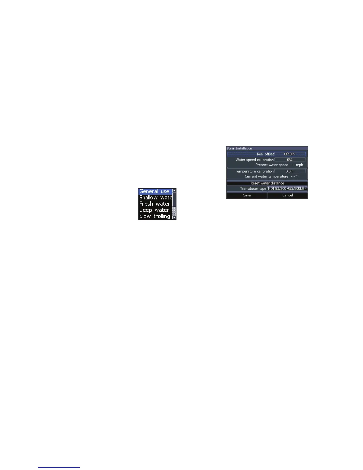 of sonar settings geared to specic