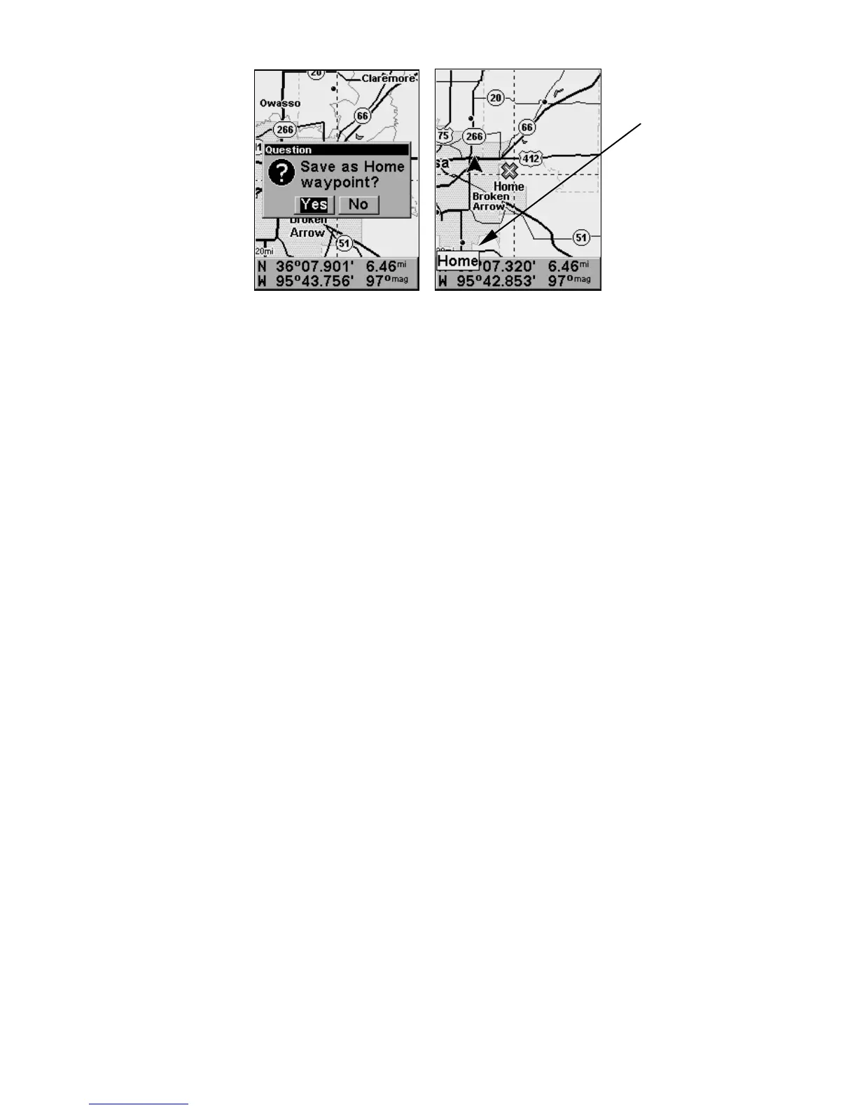 The example shows the home waypoint set at the cursor location. If the