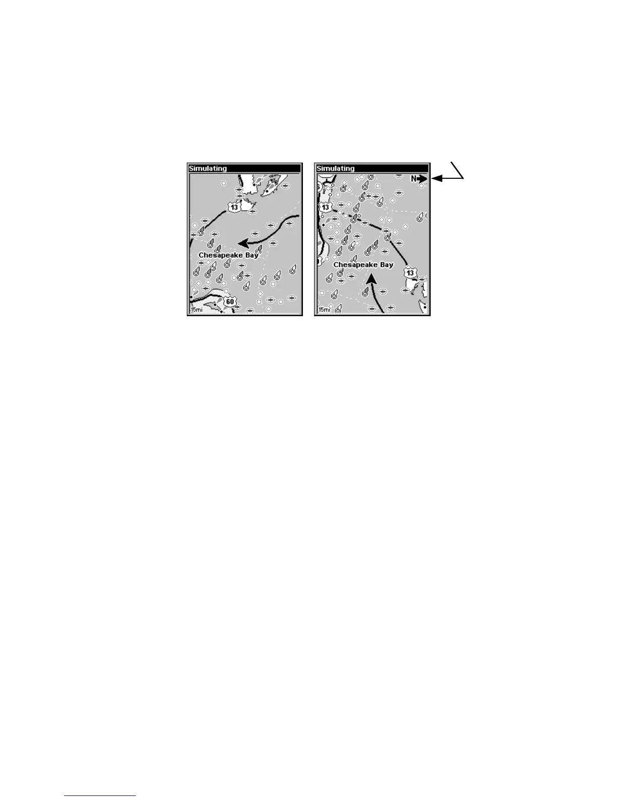 screen. When track-up, course-up or heading-up mode is on, an "N"