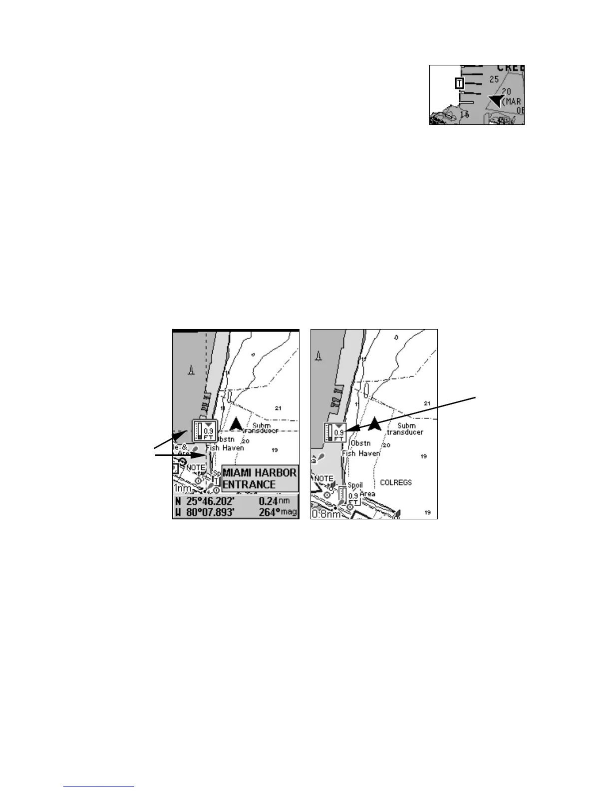 NauticPath chart showing Tide Station icon selected by cursor (left).