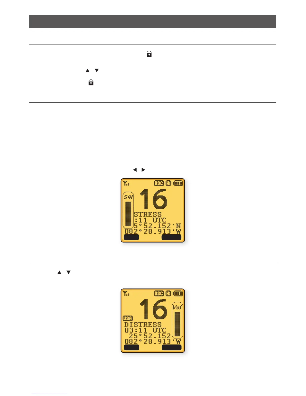 by pressing the VOL / keys on the side of unit.