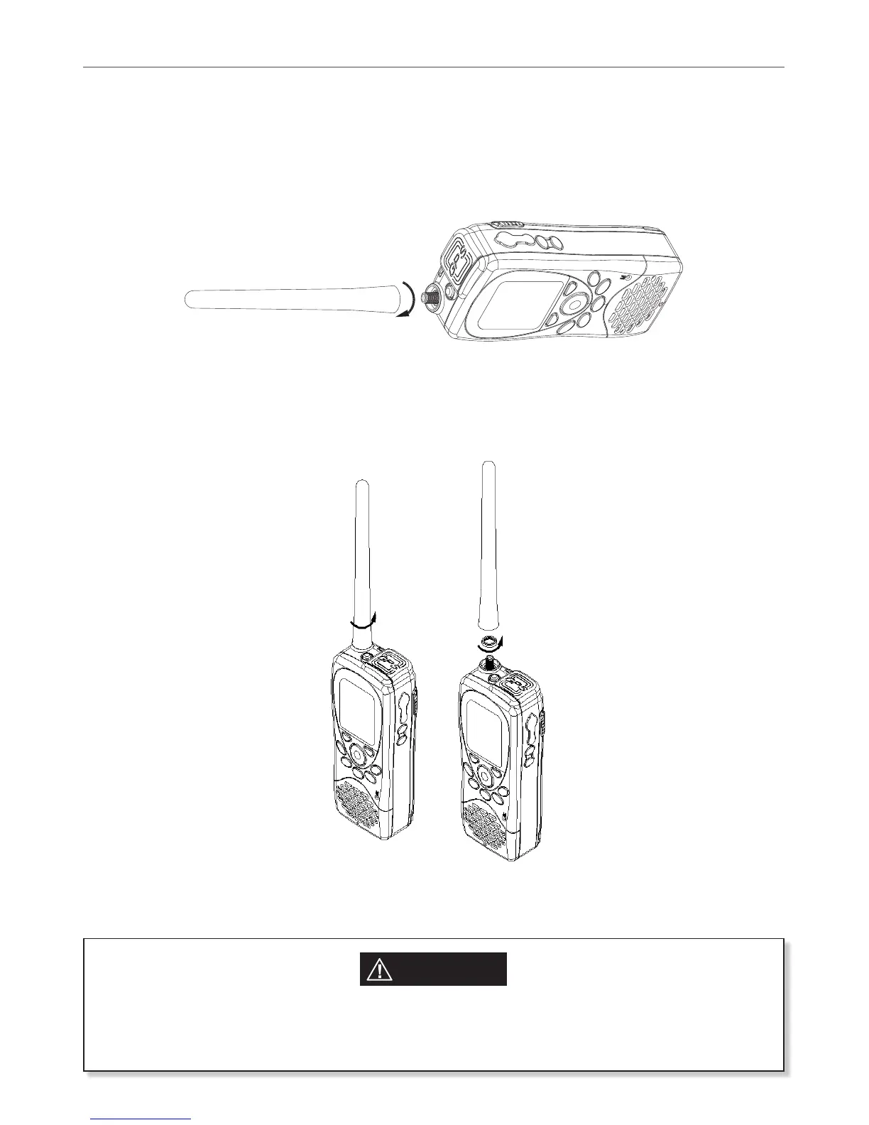 Note: Do not operate the radio or press PTT key without the antenna being installed.