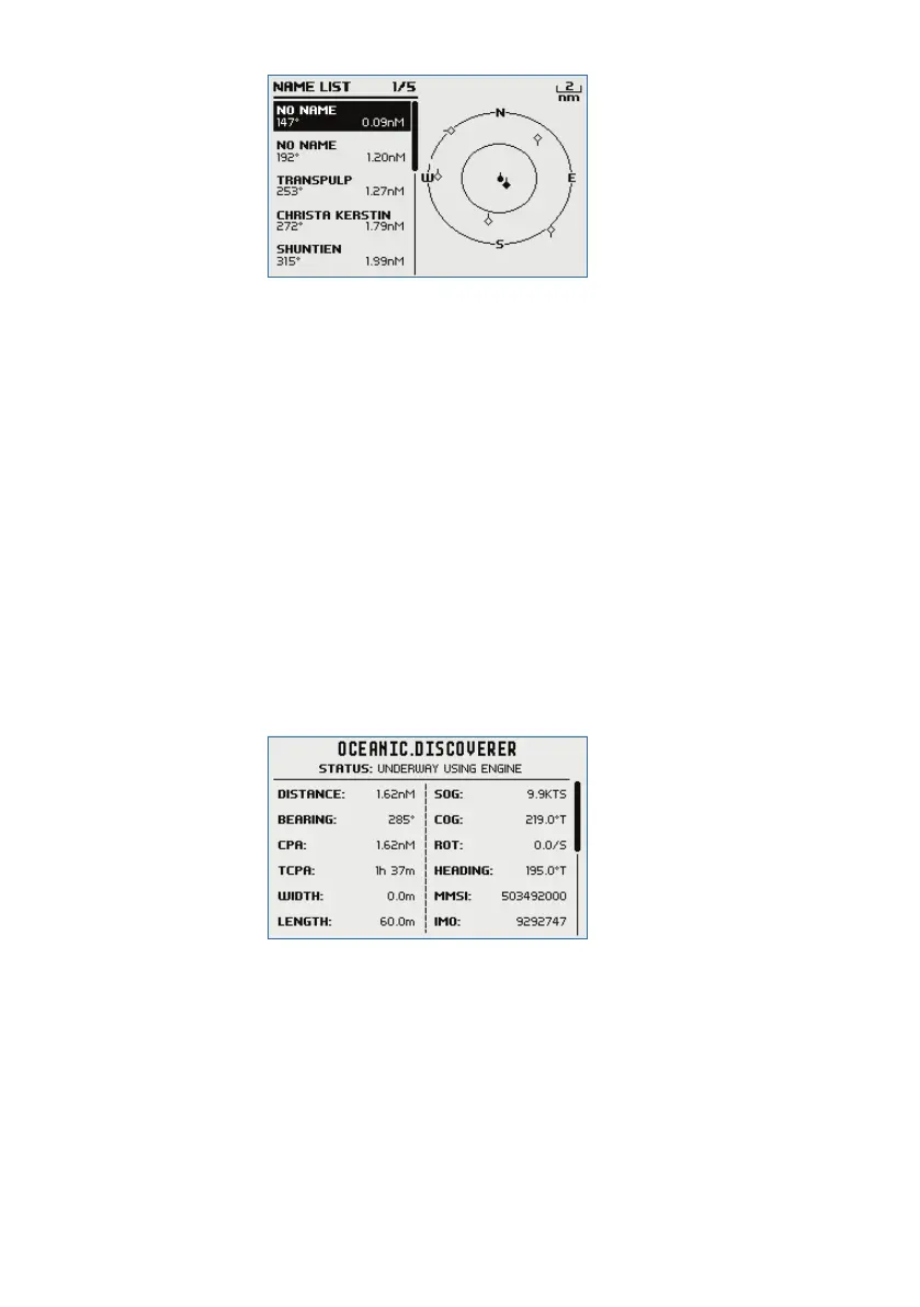 7. Press ENT to view full details of the highlighted target such as MMSI,