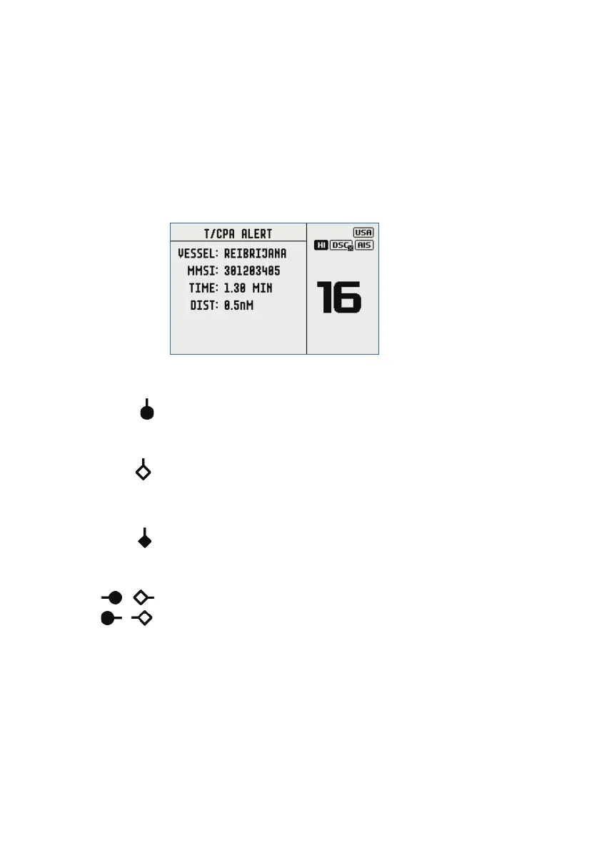 ¼ Note: If the radio detects a TCPA or CPA breach, the T/CPA Approach