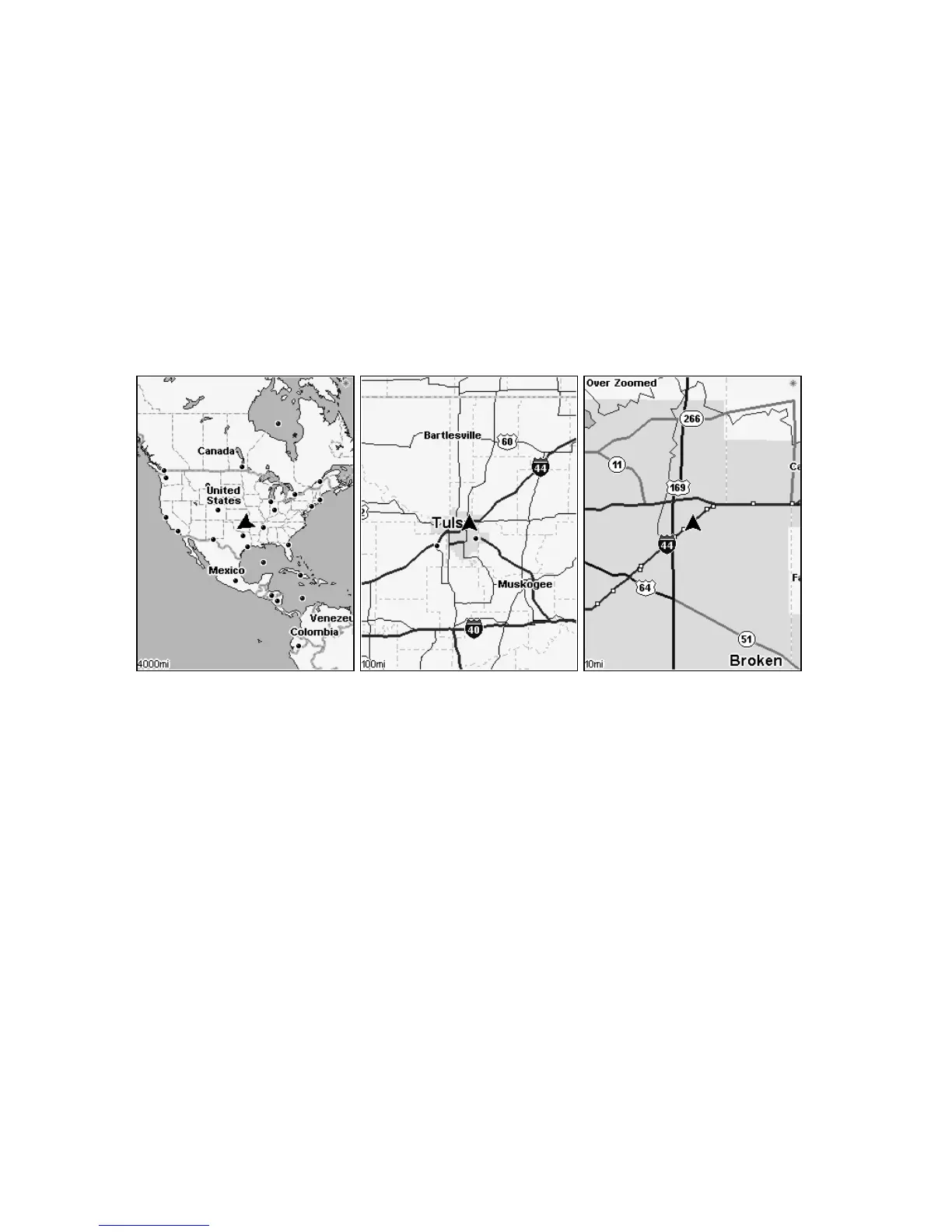 The Zoom In and Zoom Out keys zoom the map to enlarge or reduce its