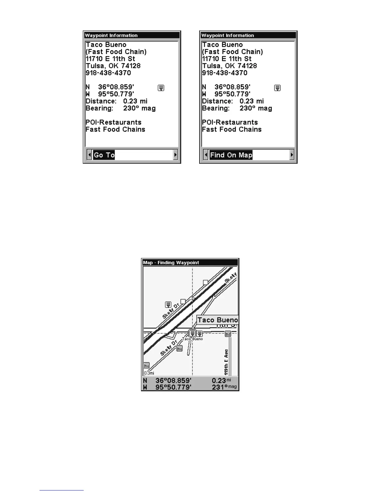 Go To waypoint command; right figure shows Find On Map command.