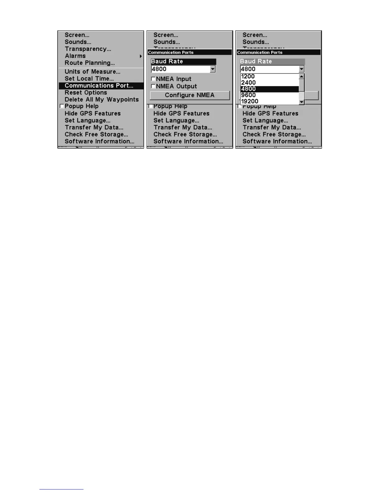COMMUNICATIONS PORT|ENT|↓ to CONFIGURE NMEA|ENT.