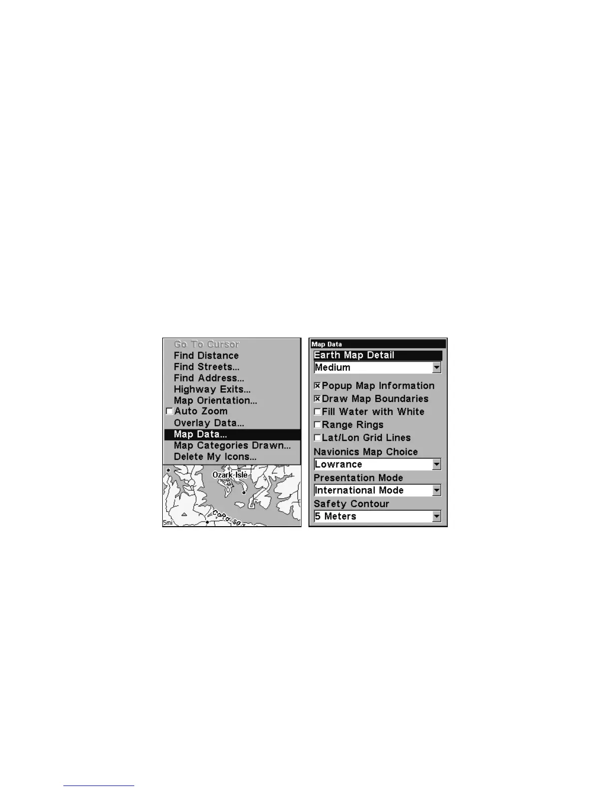 screen into a GPS plotter); turn off or on the pop-up map info boxes;
