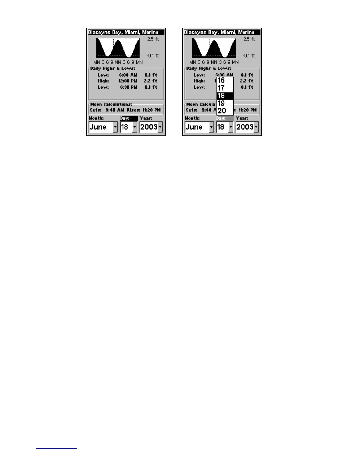 2. Use ↑ and ↓ to select the desired month, day or year, then press