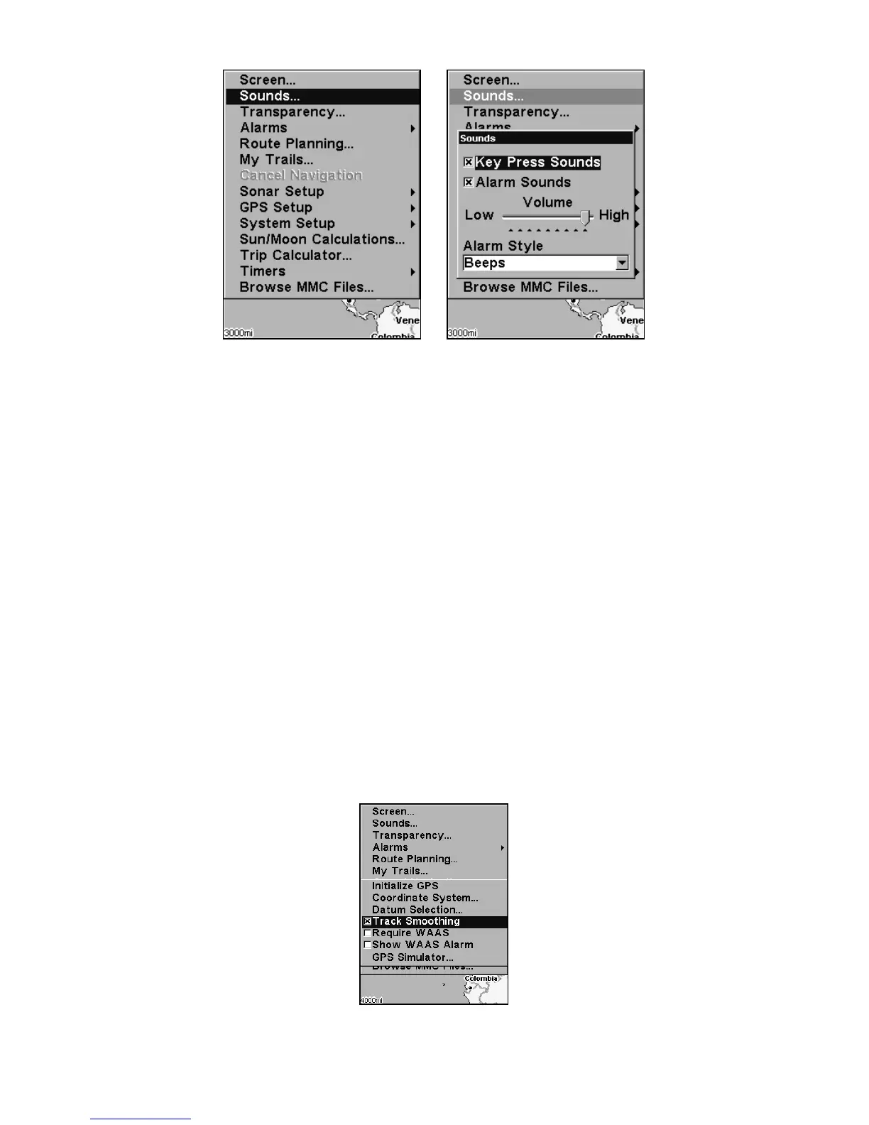 Sounds command, left. At right, the Sounds menu.