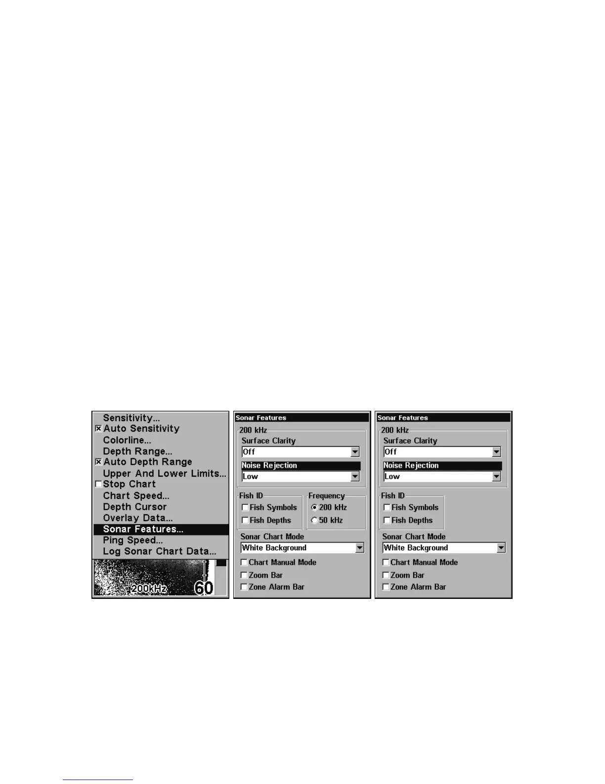 At left, Sonar Menu with Sonar Features selected. In the Sonar