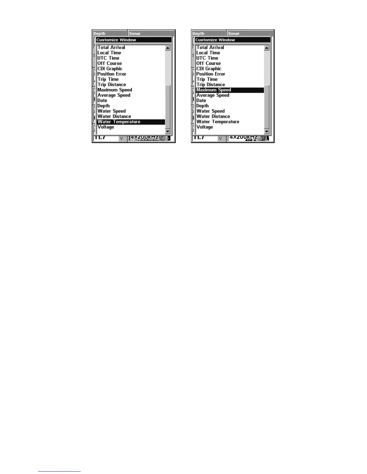 The FlashGraf sonar page option represents a flasher style sonar com-