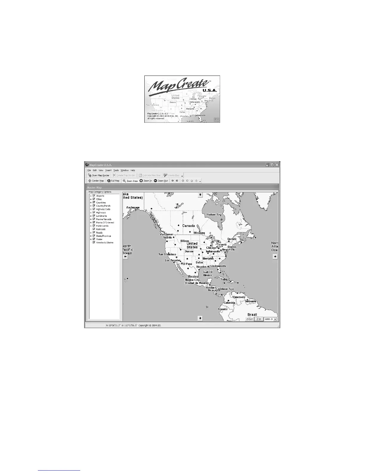 When you start MapCreate, the opening splash screen appears while
