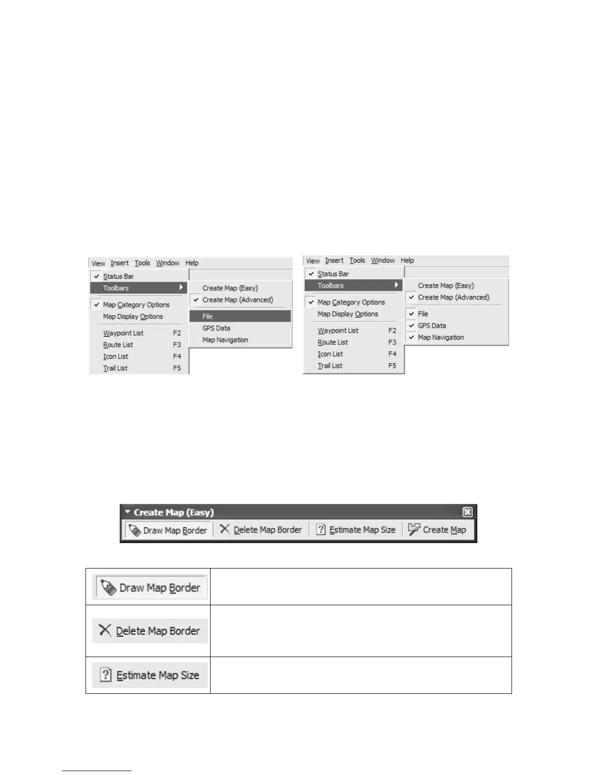 VIEW|TOOLBARS. A toolbar is active when a check mark is dis-