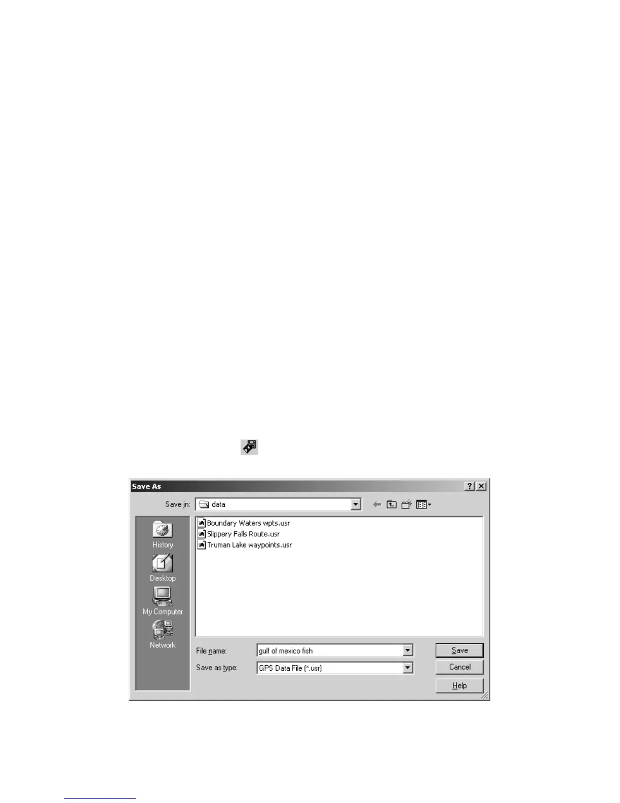 Save GPS Data File dialog box.