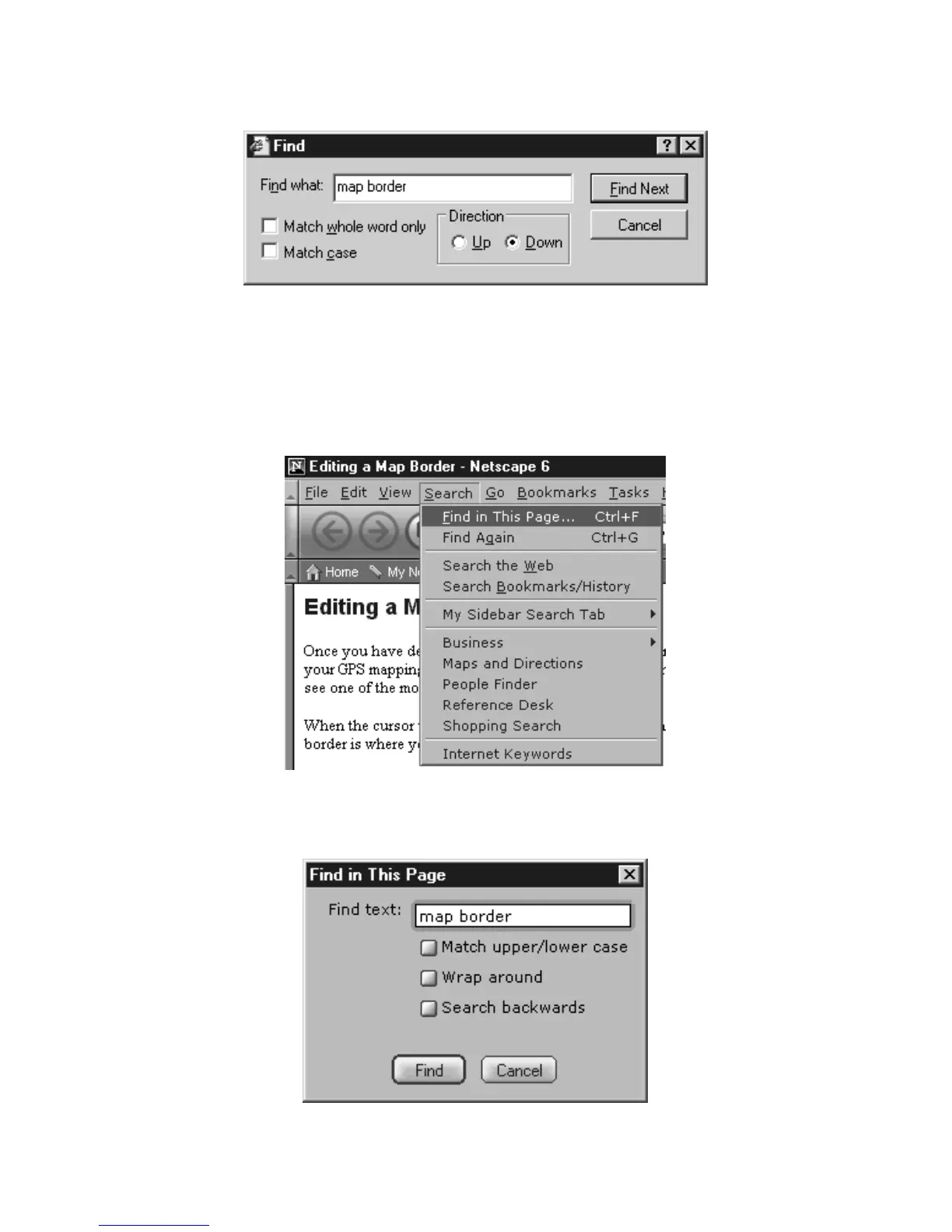 Search a Help document for the term "map border."