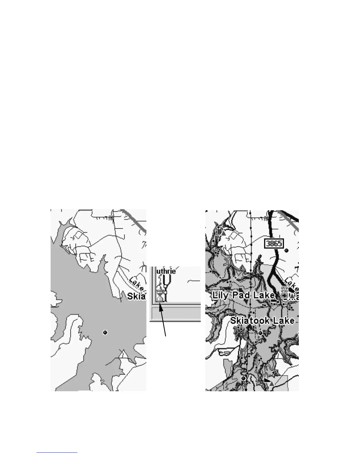 Left, a portion of Skiatook Lake with regular MapCreate data. Right,