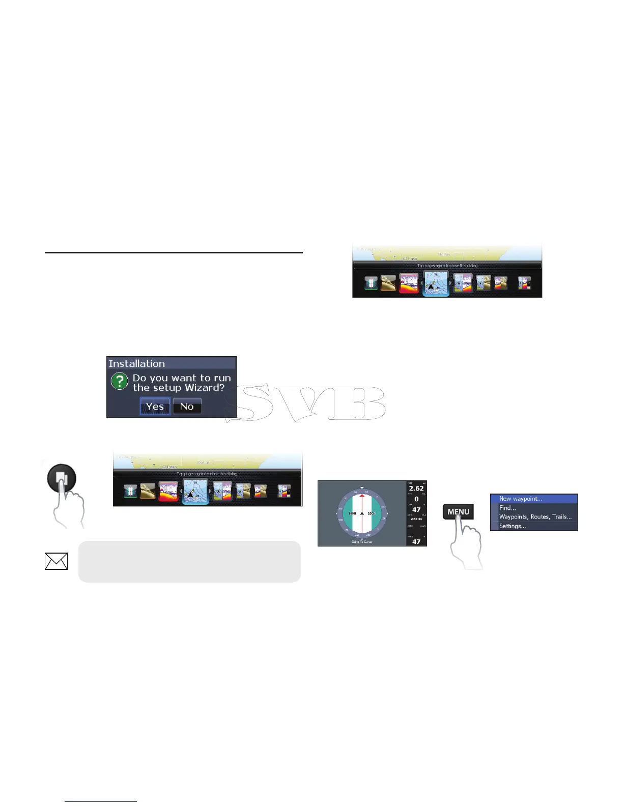 The Steer, Downscan, Sonar and Chart pages have