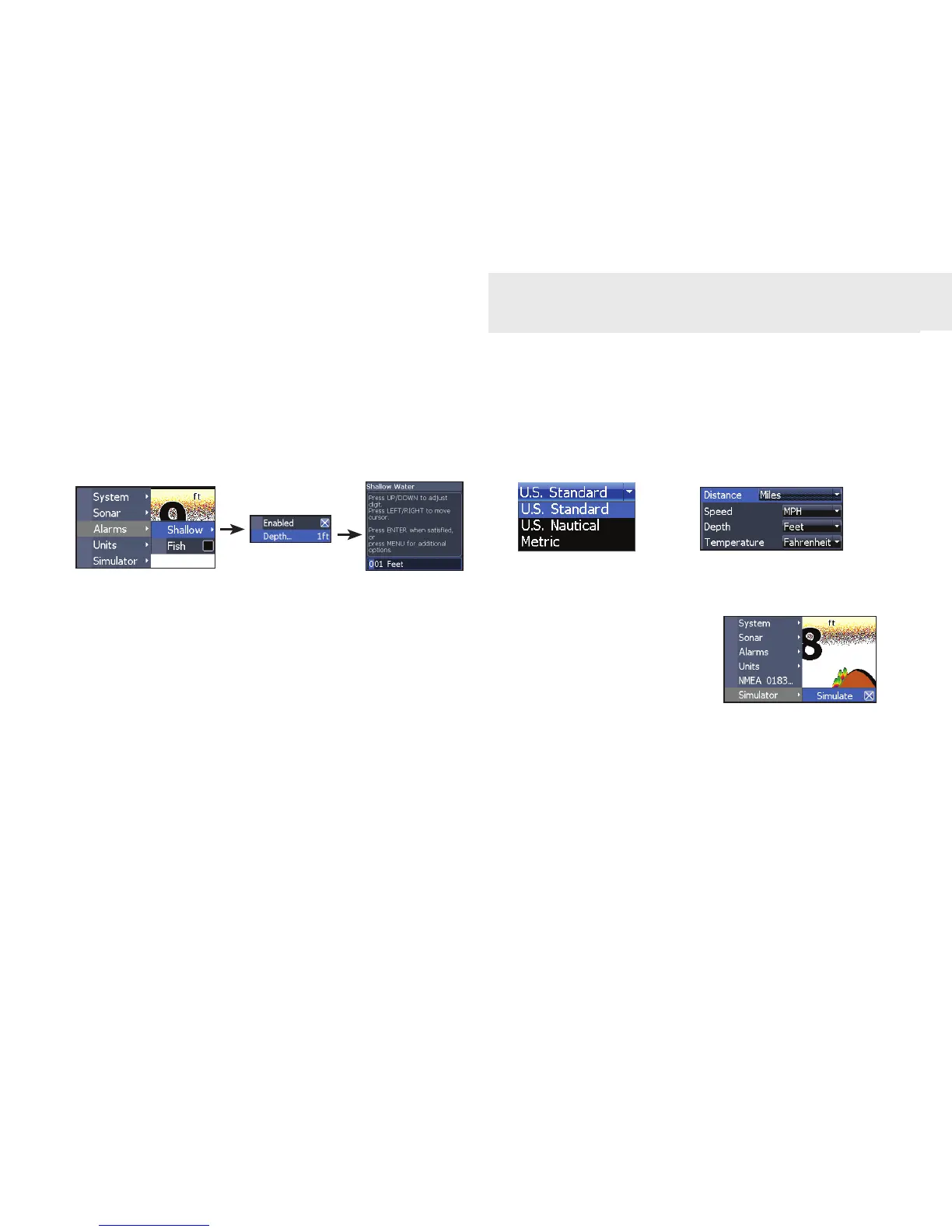 thresholds for the Shallow alarm and Fish
