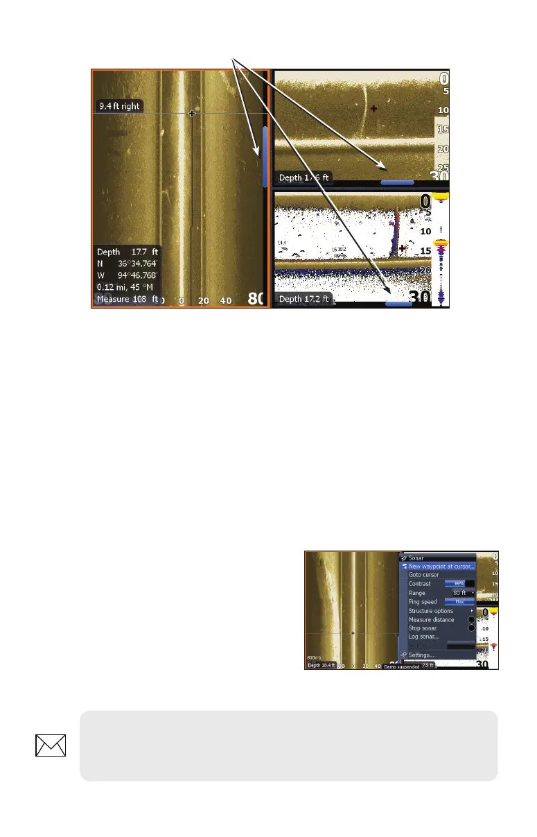 or to the left (Downscan). The blue history tracking bar will appear