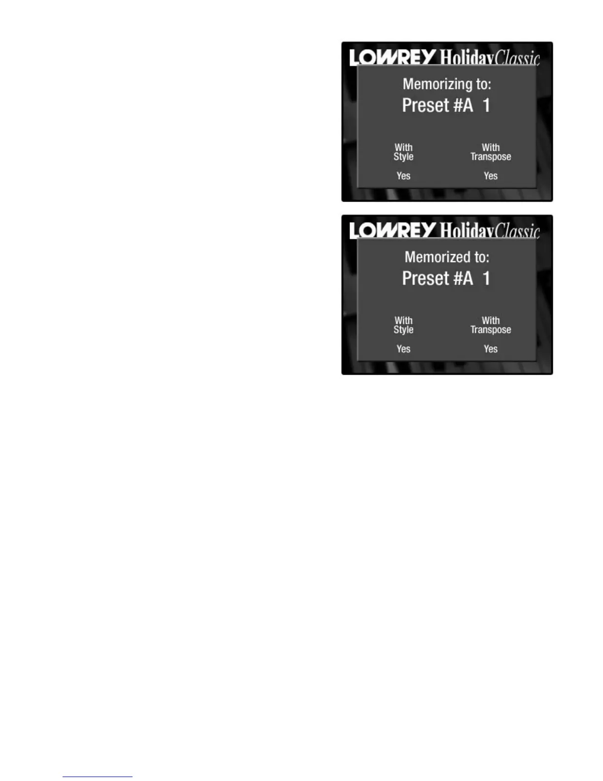 TIP FROM LOWREY: Even though the organ has the capacity of holding 22 customized presets, it is