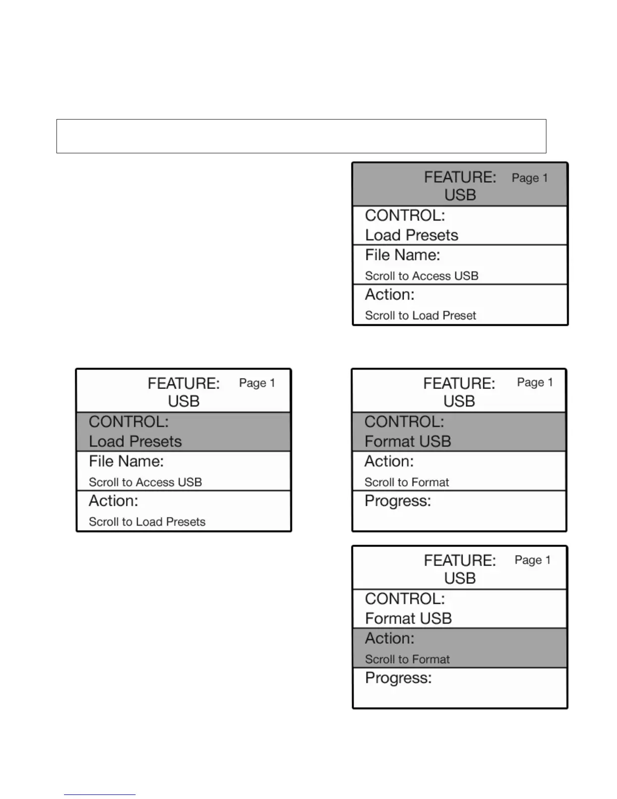 CONTROL section of the screen. display the CONTROL:FORMAT USB selection.
