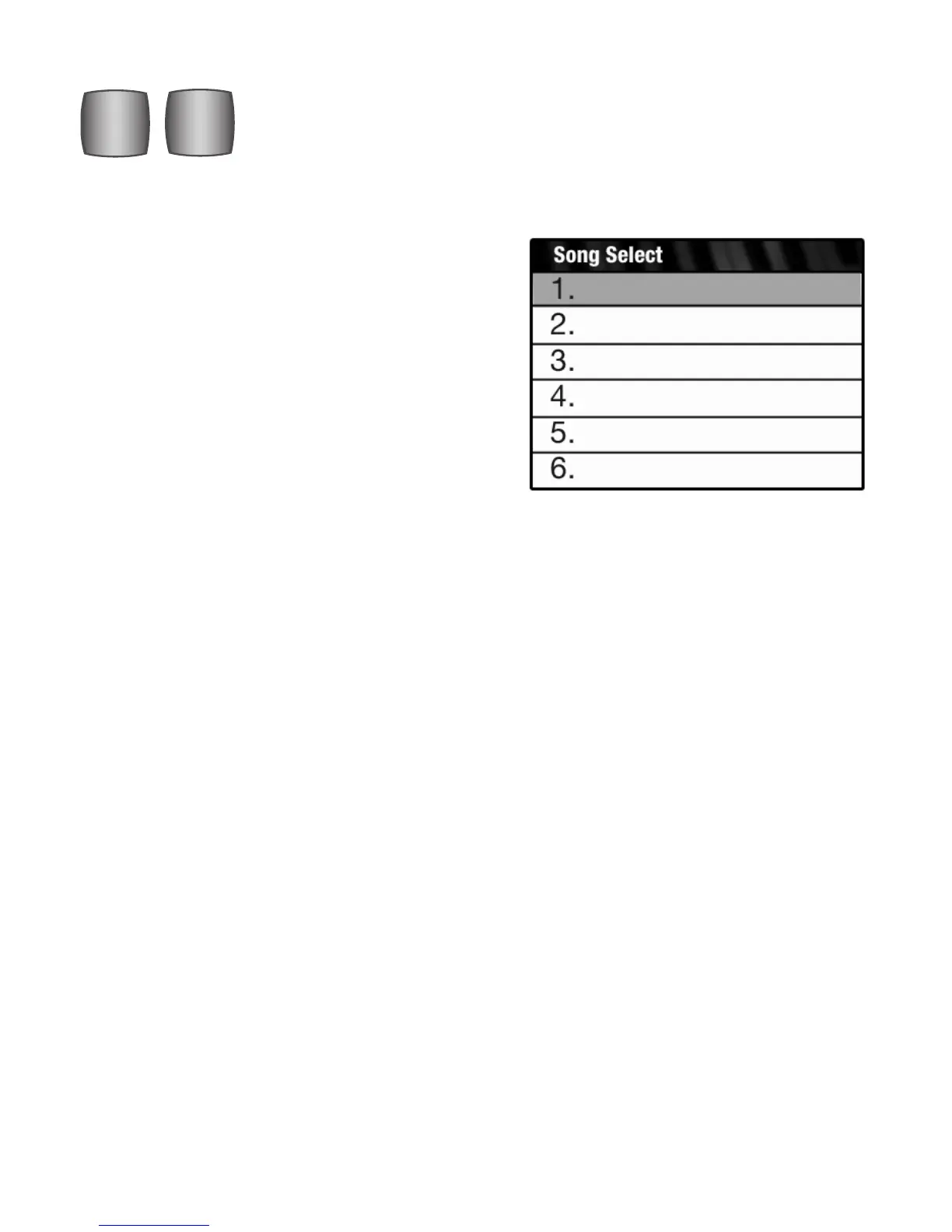 causes the screen to display the first six song titles on