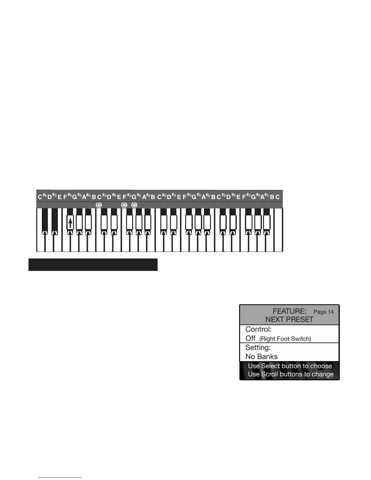 without having to actually press a preset button. Presets can be selected by pressing the right foot switch.
