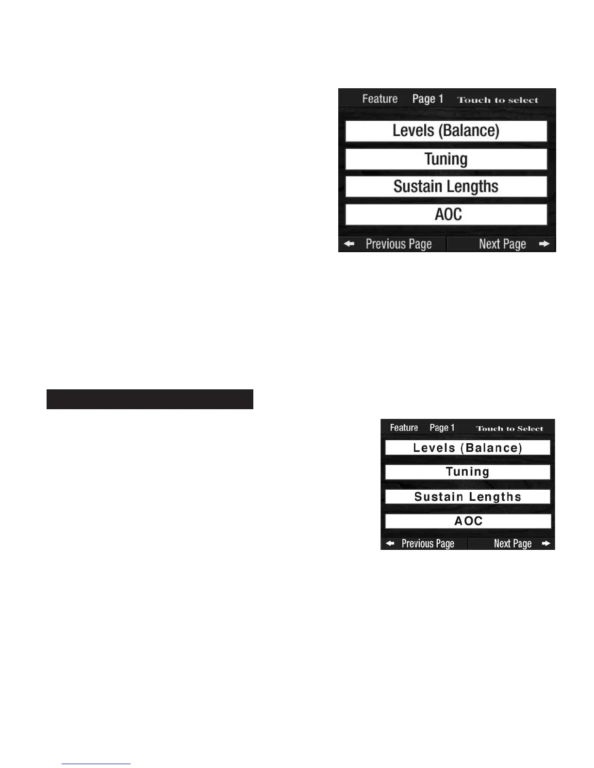 •Pressing the FEATURE(CLEAR) button again returns the Touch Screen to the last Feature Page displayed.