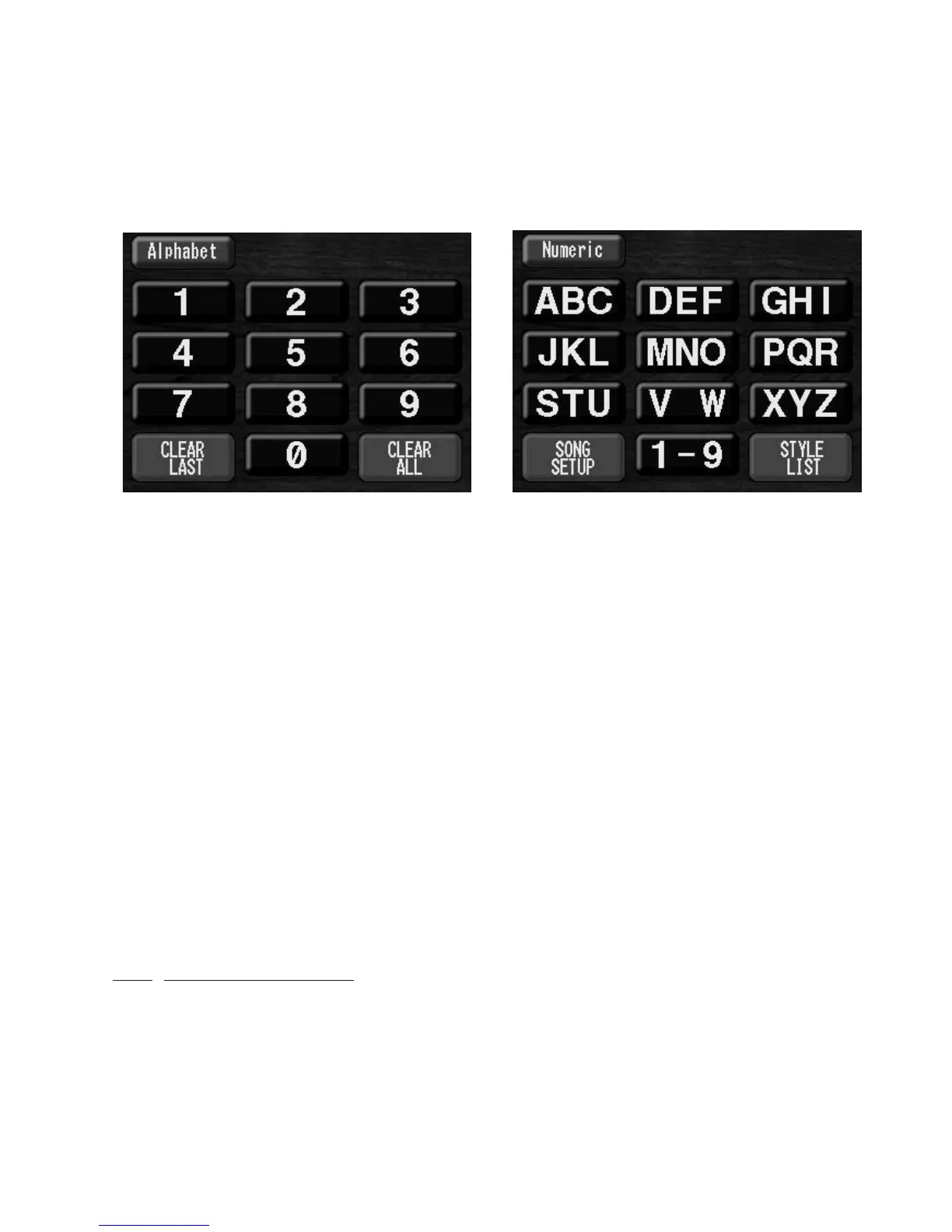 The ALPHABET TOUCH SCREEN feature makes searching the lists of Rhythm Styles (and Song Set Up
