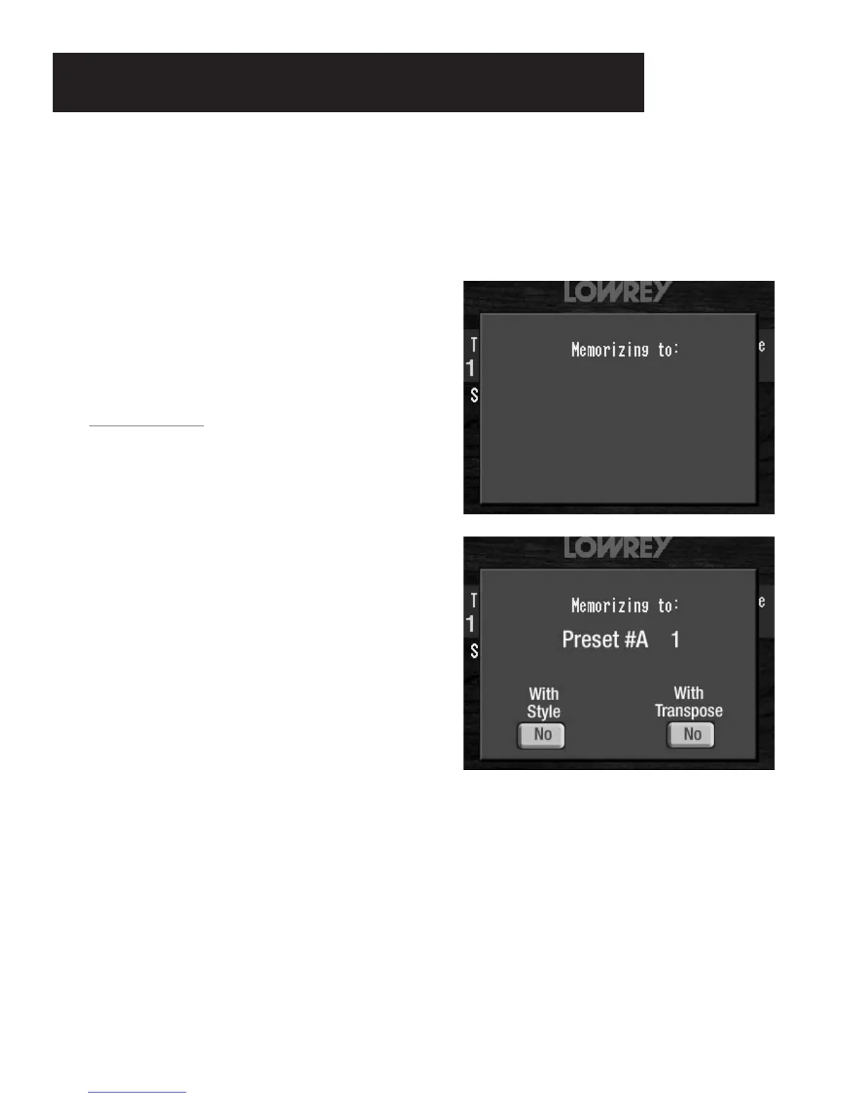 A TIP FROM LOWREY: Read through this procedure before doing it. Customizing a Bank Preset involves the