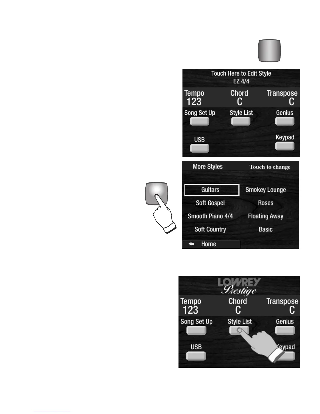 To select one of the Rhythm Style VARIATIONS simply press the desired name on the screen. All of the