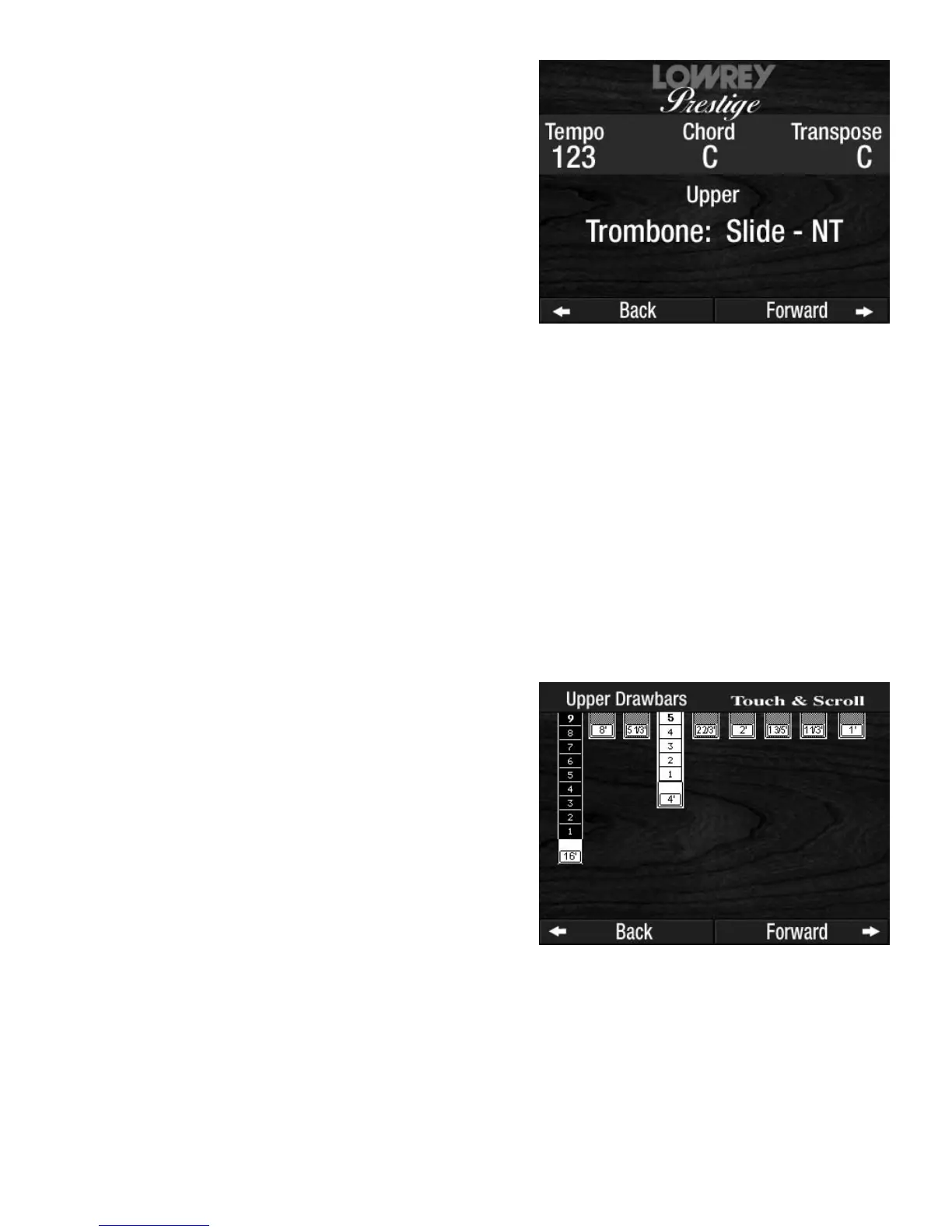 SCROLL button, causing the Flute Drawbar image to lengthen, increasing the